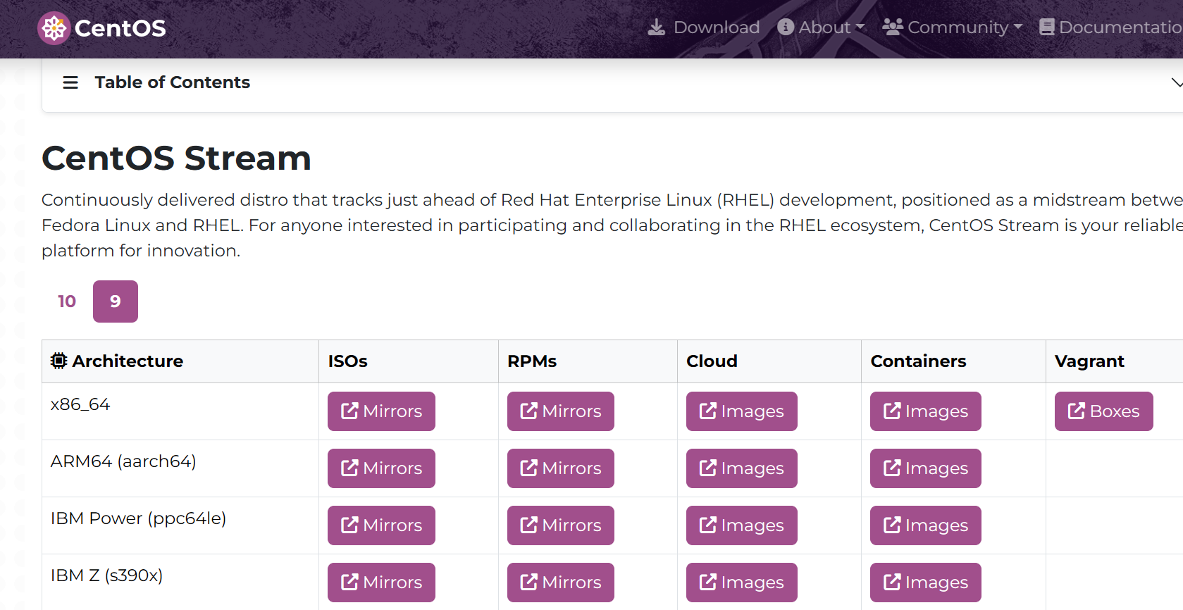 CentOS Stream Continuously delivered distro that tracks just ahead of Red Hat Enterprise Linux (RHEL) development, positioned as a midstream between Fedora Linux and RHEL. For anyone interested in participating and collaborating in the RHEL ecosystem, Cent