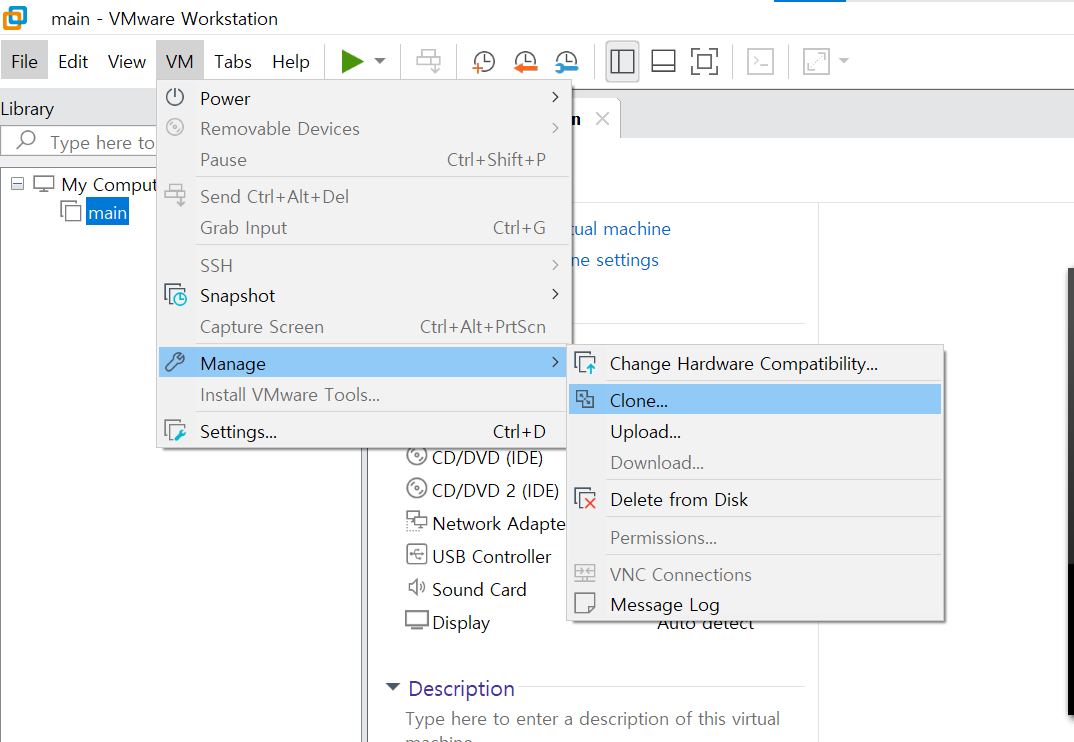 VMware 에서 버추얼 머신을 생성한 뒤 clone 하면 빠르게 복제 버추얼 머신을 만들 수 있다.
